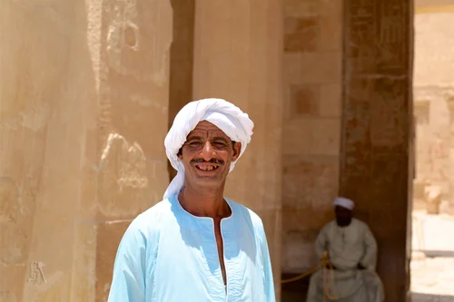 An Egyptian guide, or maybe guard, at the Temple of Hatshepsut near the Valley of the Kings on the west bank of the Nile